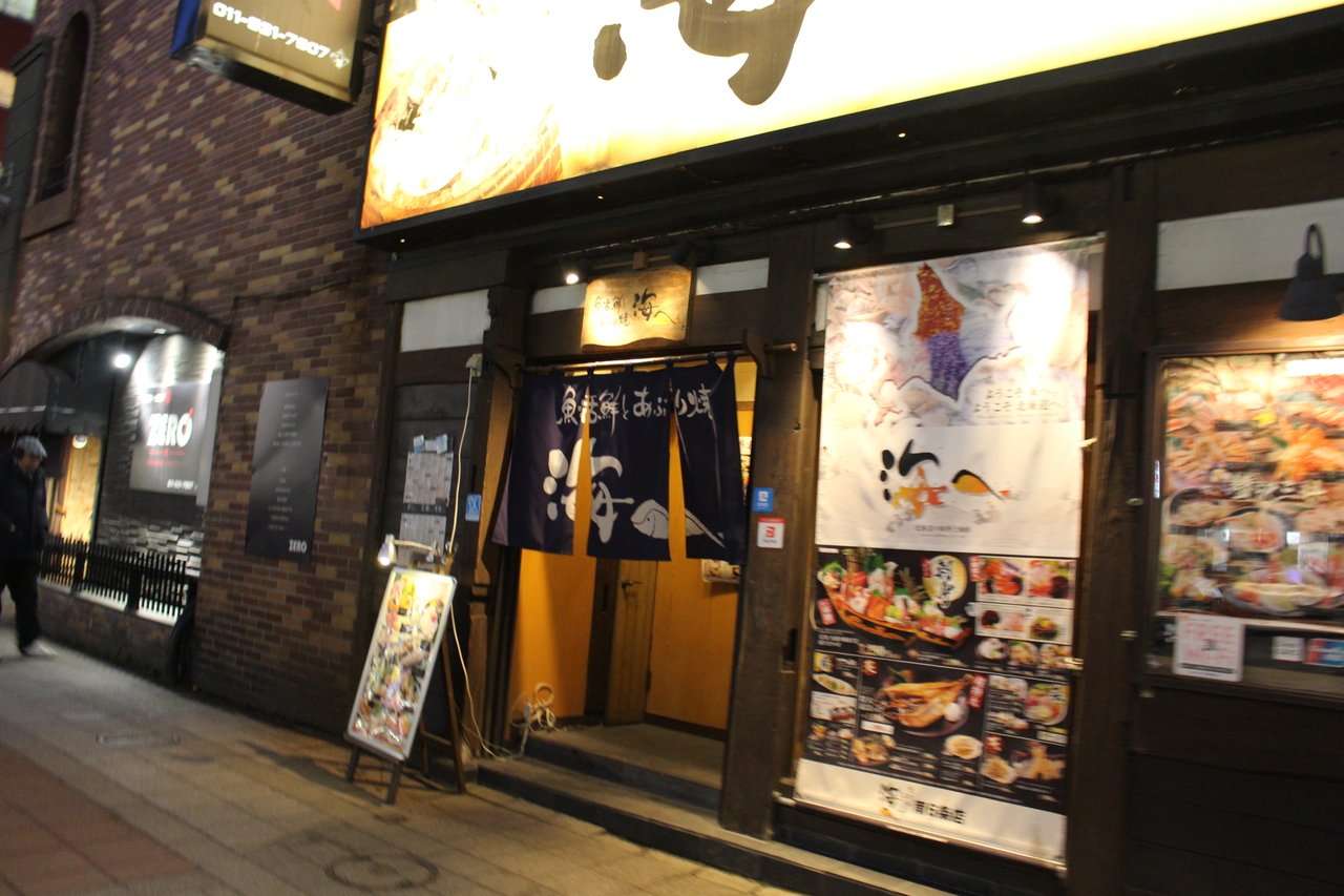 北海道、札幌市内にあるレストランです。すすきのにある海鮮居酒屋です。だいたいの北海道名物をいただきました。ホタテのバターしょうゆ焼きは香ばしくて、バターのまろやかさにホタテ本来の甘みが口にひろがりおいしかったです。いくらとさけの親子ロールもおいしかったです。