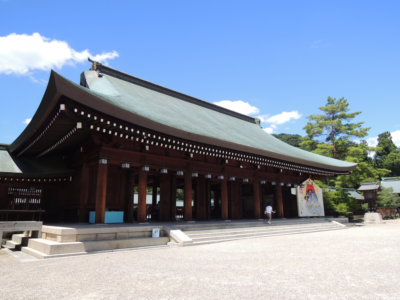 この地に畝傍橿原宮があったとされる場所に創建された橿原神社は、胃がいいと近年の明治23年に創建されました。広い敷地内はとても静かで、外拝殿前には大きな絵馬がありました。駅から徒歩10分弱でもいけますが、橿原神宮の境内に広い駐車場か完備されているため車での参拝も問題ありません。また、深田池という大きな池があり、遊歩道もあるので、参拝後はのんびり散策もできます。宝物館は休日開館で、平日は予約制です。