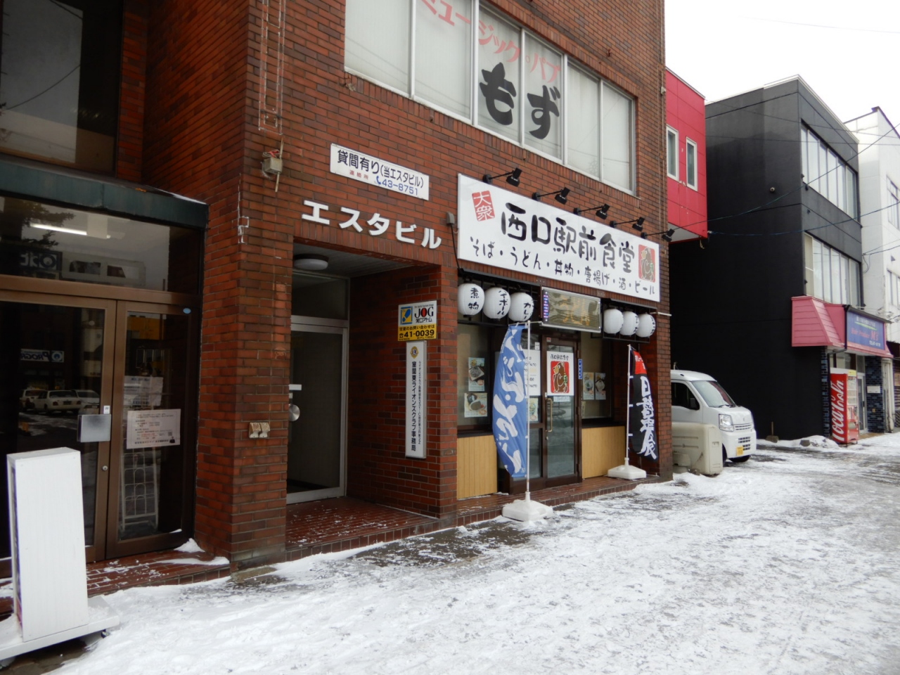 名前の通り、東室蘭駅の西口を出て、すぐ左側のビル1階にあります。