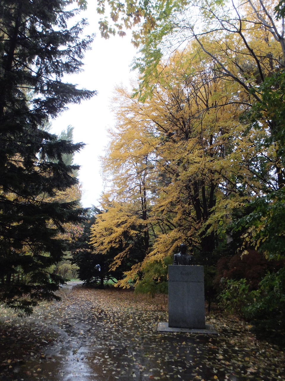 秋だったので花はありそうもなく、ちょっとだけ木々を見ただけで退散。ただ、入り口にある胸像に注目、お札の肖像画として有名な新渡戸稲造博士の顕彰碑があります。ここ札幌農学校の2期生だったとのこと。これだけは季節外れでも見て帰りましょう。