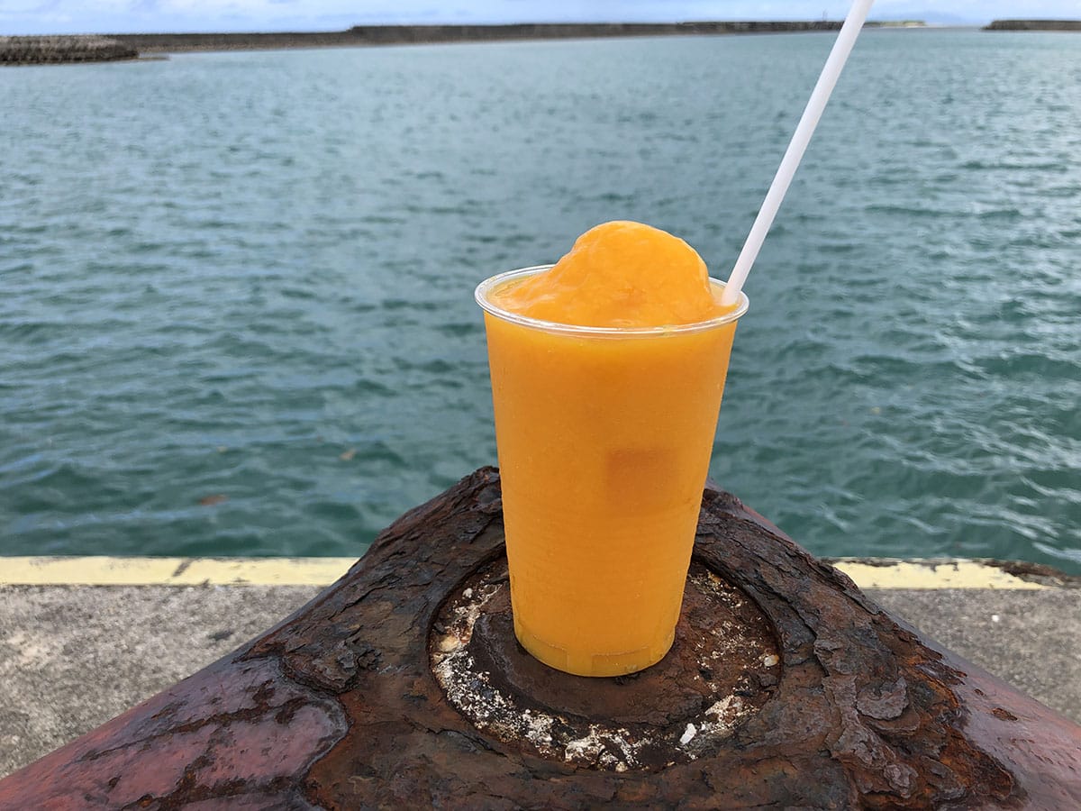 上原港から周回道路を星砂の浜、大原方面へ600m行ったところにあります。ここのオススメはマンゴージュース。自家製のマンゴーを丸々1個をジューサーにかけるだけという、シンプルですがドロリとした濃厚なマンゴージュースが楽しめます。座席が少なく満席の時もしばしばですが、マンゴージュースはテイクアウトもOKです。テイクアウトして近くの上原港で海を眺めながらも良いですよ。