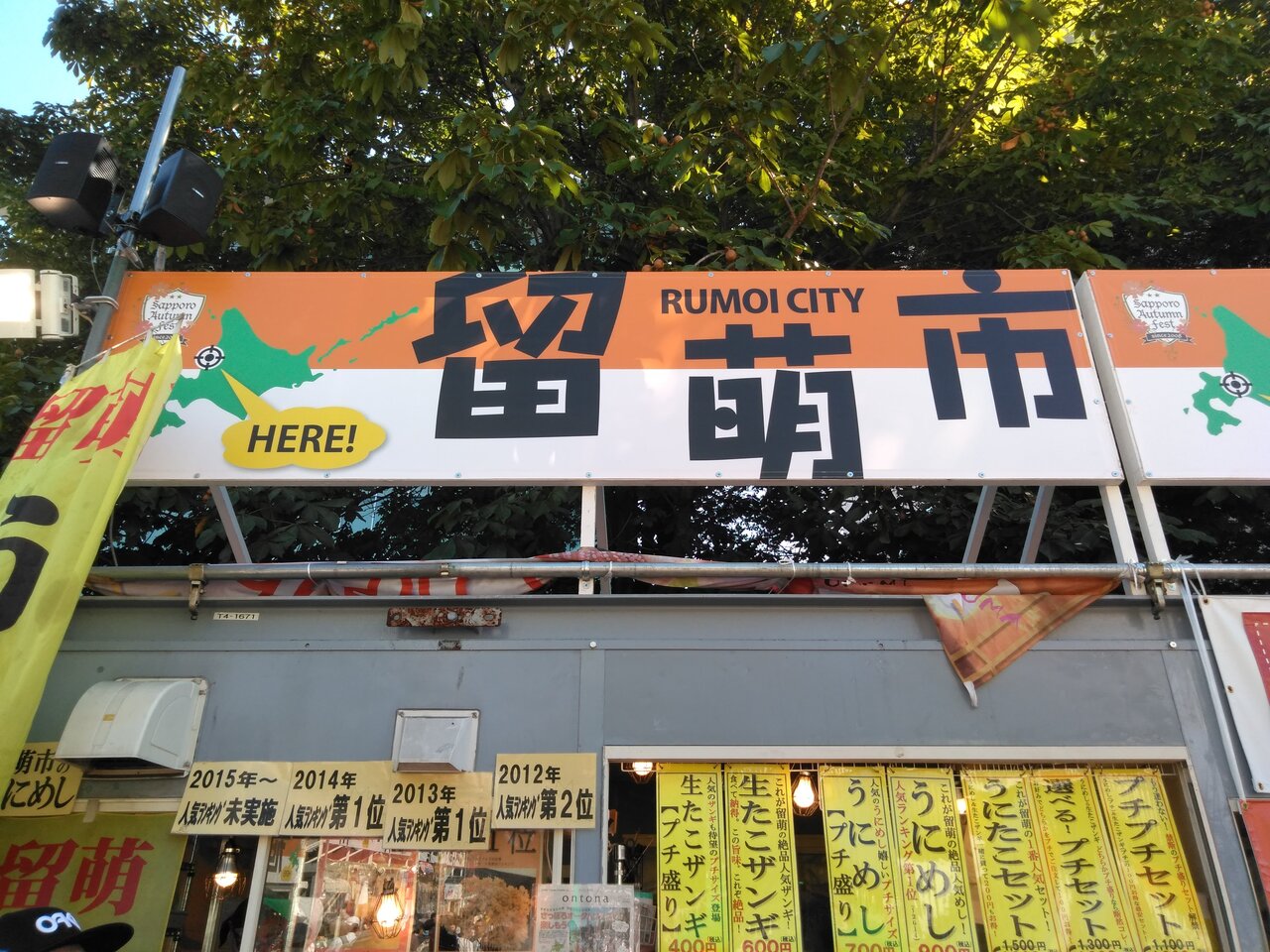 8丁目会場はほっかいどう市場という名前で、道内の味とこだわりのブースが集まっていました。オータムフェスト中4回店が入れ替わるようです。第1期に行きましたが、やはりウニが人気なようで、留萌のブースが混雑していました。