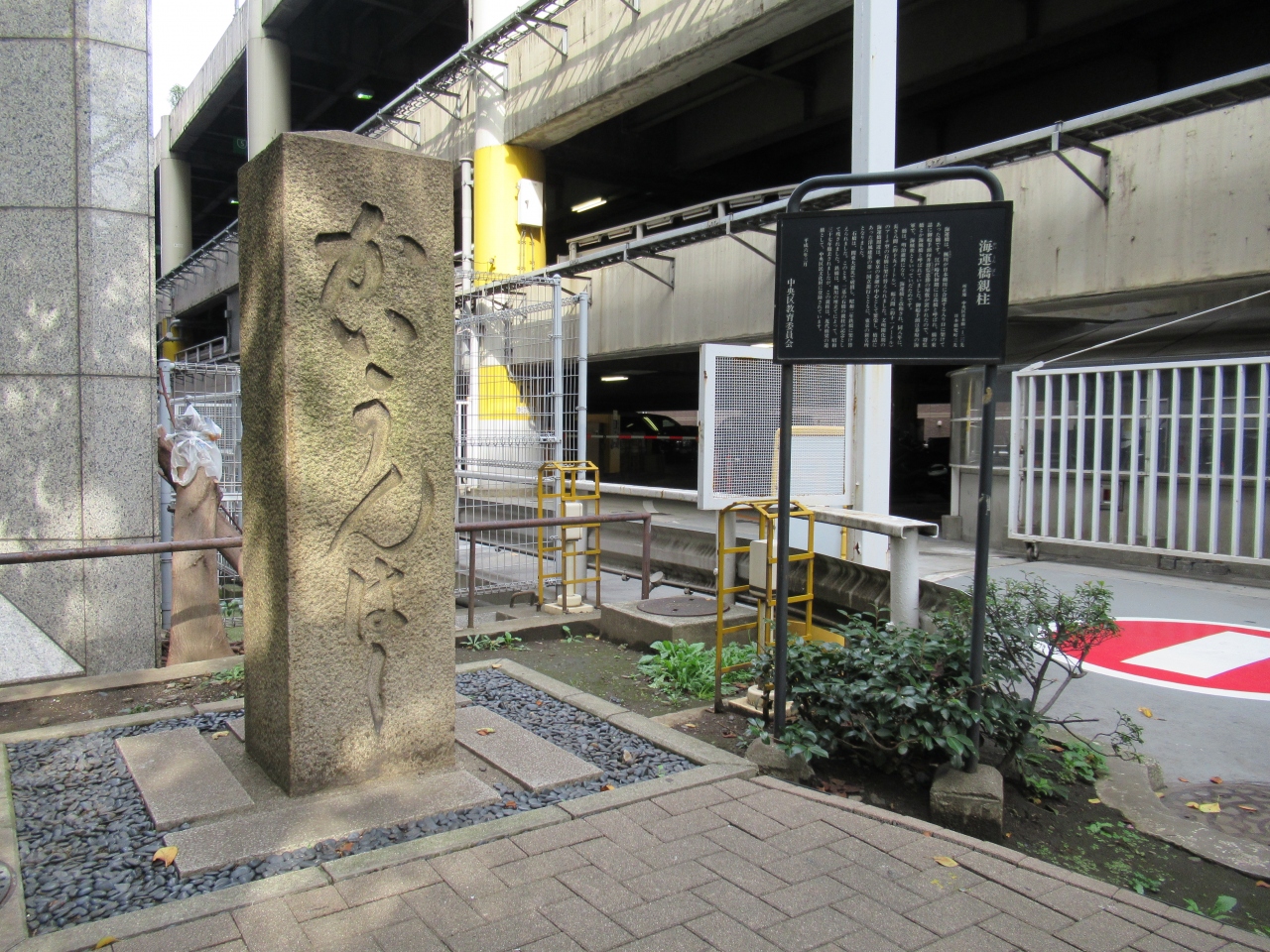日本橋側にある親柱は、公園のような整備された一角にありますので、