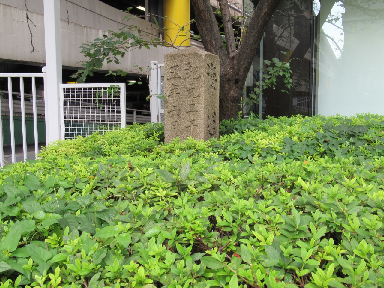 ビルの敷地の植木に埋もれていて、ちょっとかわいそうなことになっていますね。