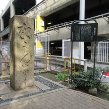 かつてこの地に川が流れていて、そこにかかる橋の親柱が今でも残っています。