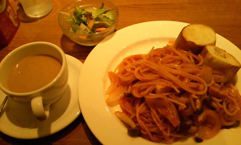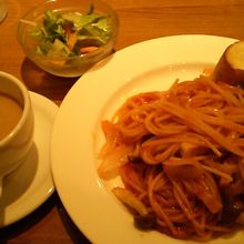 ランチはパスタやサンドイッチなどがあり、サラダと飲み物がついていてお得です。