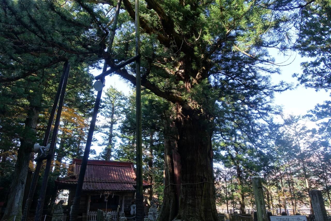 境内にはたくさん木があるのですが、やはり逆杉だけ別格という感じ。幹の太さが他の木とは全然違います。説明板によると樹齢は1500年。垂れた枝が多いので逆杉と呼ばれるとのことですが、実際そんなに枝が垂れている外観ではないかも。いずれにしても神聖な雰囲気は強く感じられ、ご神木であるのが納得です。