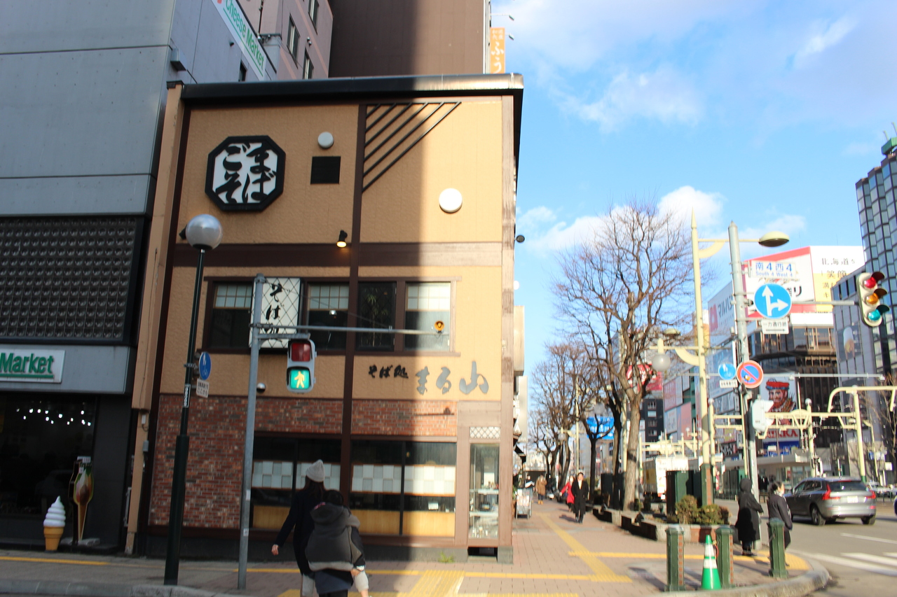 札幌市内にある日本そばの専門店です。人気観光地のすすきのにありました。まる山さんのお蕎麦はごまそばで少し太めです。歯ごたえが、しっかり味わえました。天ぷらはサクサク食感がとてもおいしかったです。丼のセットメニューもありました