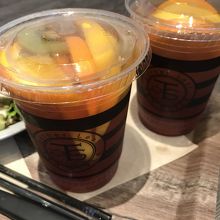 2019年7月にモスプレミアムとの併設店として桜木町駅すぐのクロスゲートの1階にオープンしました。パスタなどありきちんとした食事メニューもあり、ケーキもあり、レジ前にはクッキーなど焼き菓子もありカフェとして色々気になる美味しそうなものがありました。今回は、となりのモスプレミアムでメインを、こちらのお店ではドリンクとサラダを購入。フルーツティーは生フルーツが乗っていておすすめです。サラダもフレッシュ野菜で大満足でした。