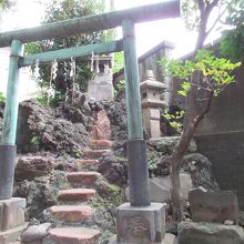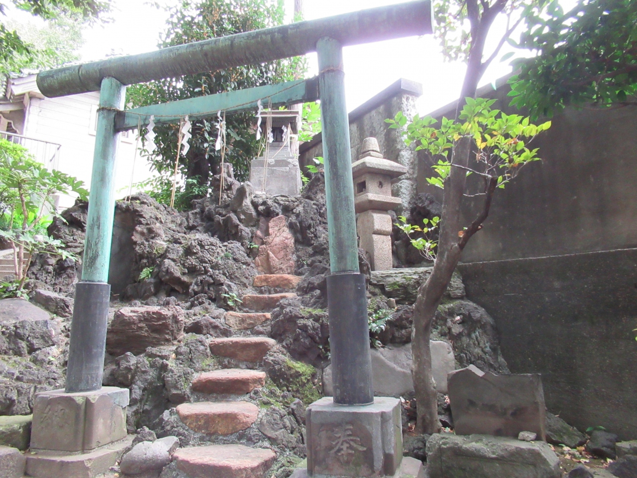 社殿へ向かう途中には、小さいながらも富士塚があり、
