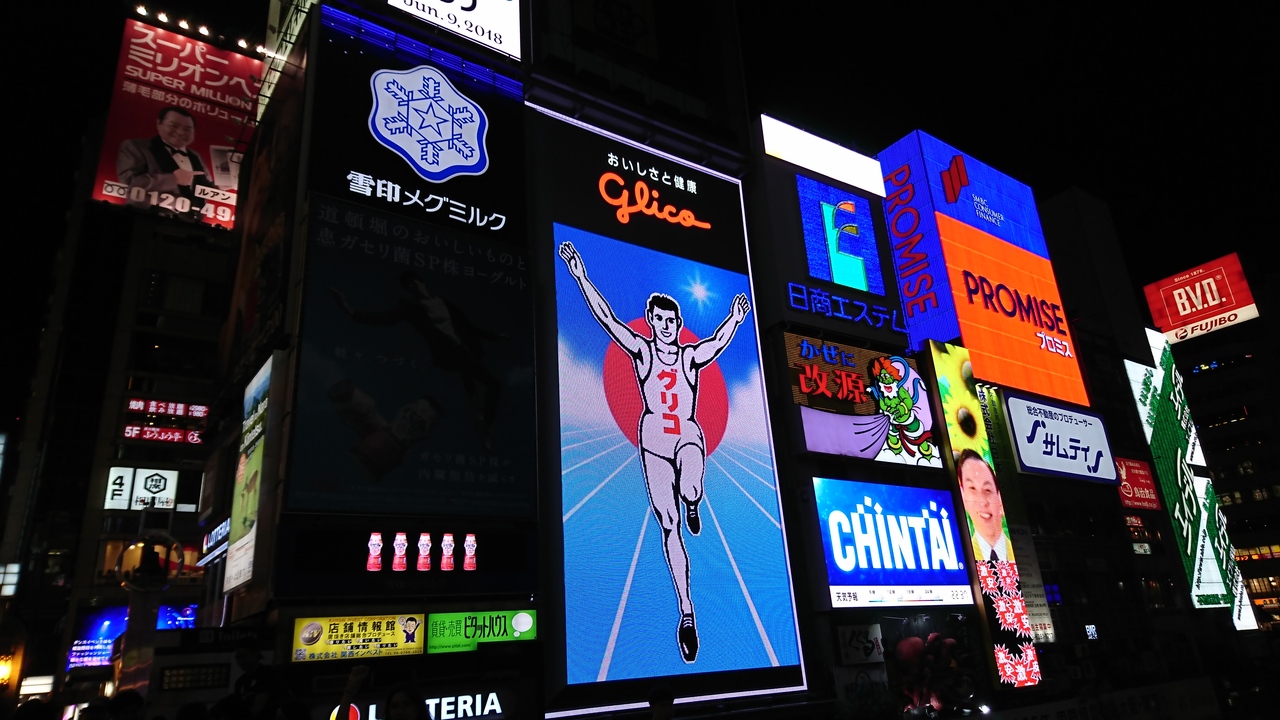 最も大阪らしい場所が、ここ道頓堀ではないかと思います。グリコの巨大な看板がここにあることはあまりにも有名で、橋の上ではこの看板を背景に同じポーズを取って記念撮影している人を多く見かけます。なんばのど真ん中にあるので、食事や土産物屋めぐりをしながら来ることかできます。
