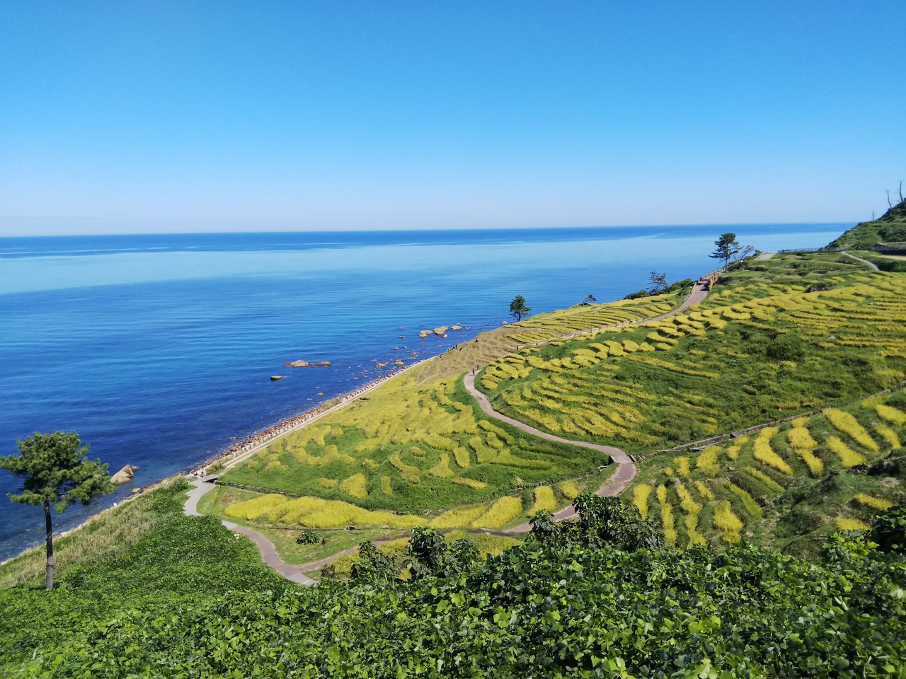 海沿いにある田なので、天気によって印象がかなり変わります。