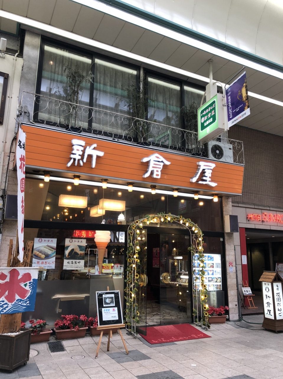 狸小路内にある甘味処です。店構えがレトロというか昭和というか、そんな雰囲気を醸し出していたので、友人と二人でちょっと入ってみようかということになり入店しました。お団子をはじめ、ソフトクリームやパフェなど、懐かしいメニューが揃っていて、加えてこの季節はかき氷も提供していました。和のテイストもありながら純喫茶な感じもあり、昭和世代には居心地良しでしたね。