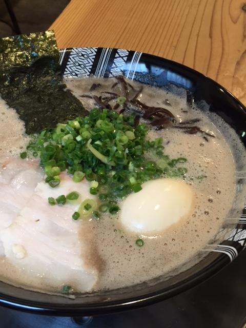 表層を無数の泡が覆う“豚骨カプチーノ”と言うらしい。卓上にある高菜や生姜を入れるとさらに美味しさが加わります。
