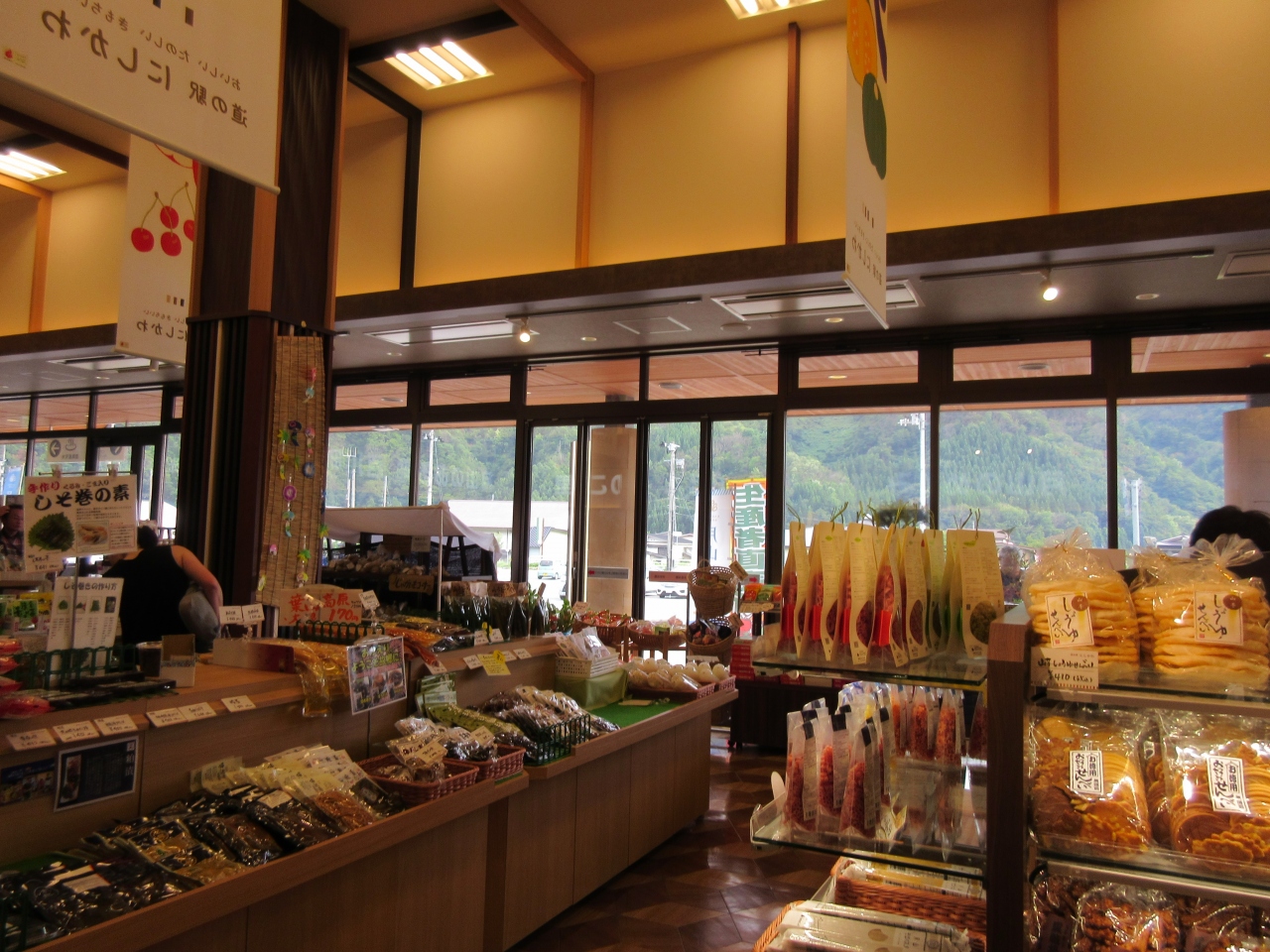 月山登山後に寄りました。道の駅が目的というより隣の日帰り温泉施設が目的でした。レストランや売店があるので、温泉後におみやげをみたり、ゆっくり休むことができたのが良かったです。山形の果物や野菜も扱っていました。