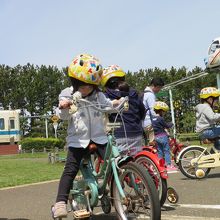 園内は広くプール、池、芝生広場、砂場、そして交通公園があります。