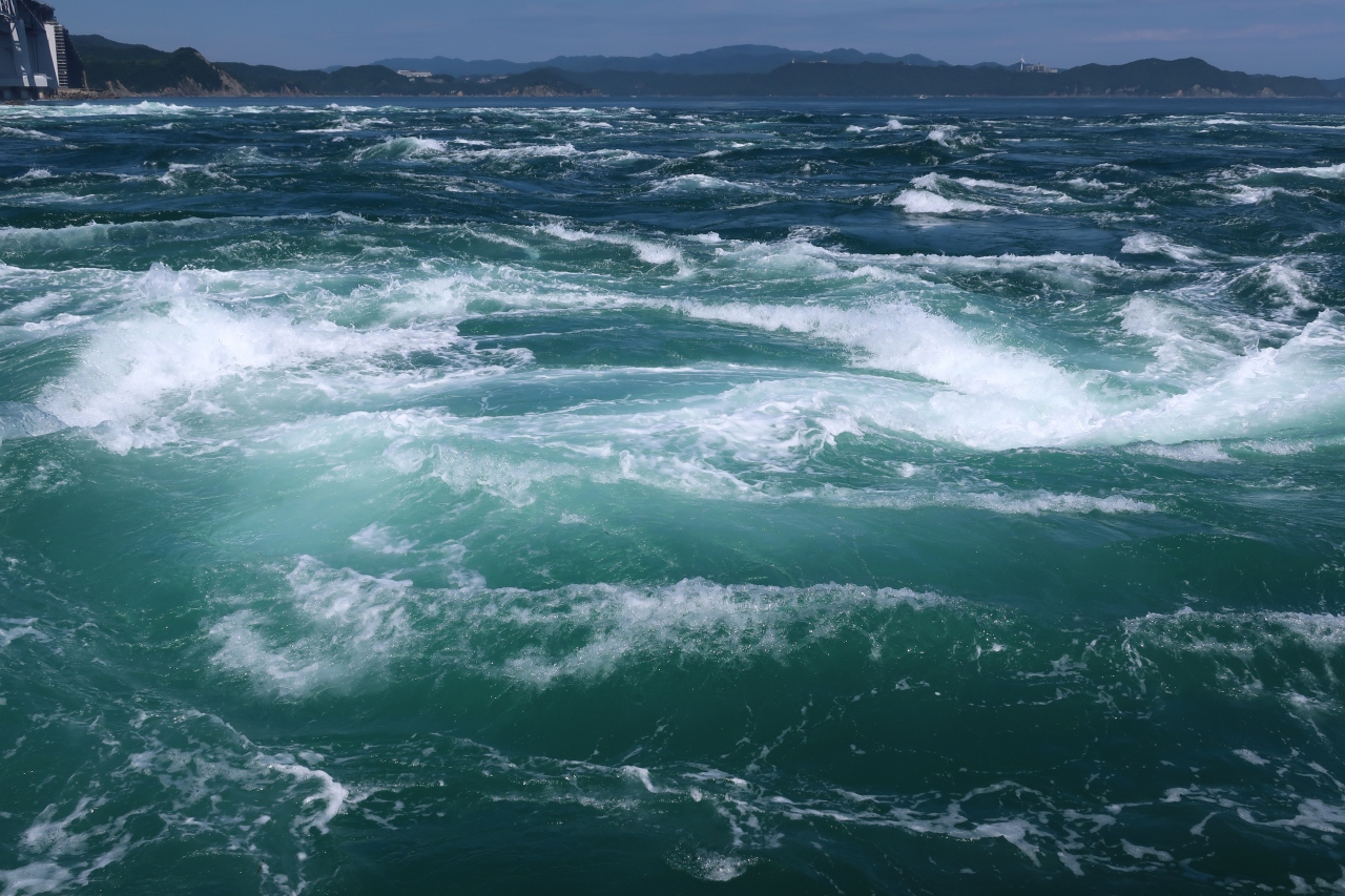 播磨灘と紀伊水道を結ぶ鳴門海峡に発生する渦を巻く潮が渦潮です。月の引力による潮の満ち引きによって生じる海流が鳴門海峡に流れ込み渦潮が発生します。鳴門観光の最大の観光地で、渦を巻く姿は圧巻。渦潮を見るなら大潮の時間に合わせて、観潮船から見ないと、その迫力は分からないと思います。是非観潮船にのって見てください。