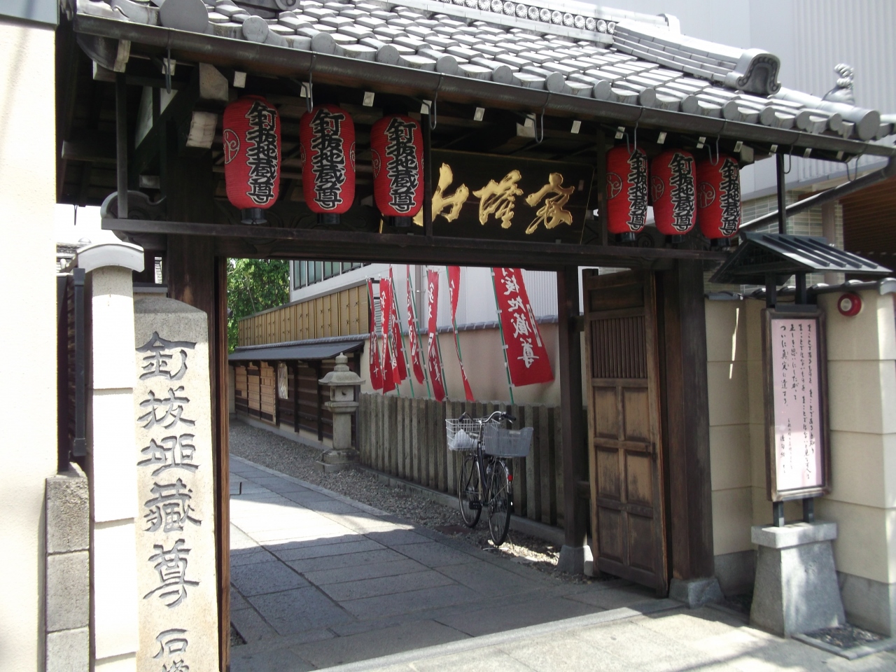 千本今出川の交差点からさらに千本通を北に進んでいくと通り沿いにある、弘法大師創建のお寺です。弘法大師がここで人々を苦しみから救うために石像を彫り、それを苦抜き地蔵と名付けたたものが、後々に釘抜きと変わってこのように呼ばれるようになったそうです。釘抜きがたくさんかざられている景観は圧巻です。