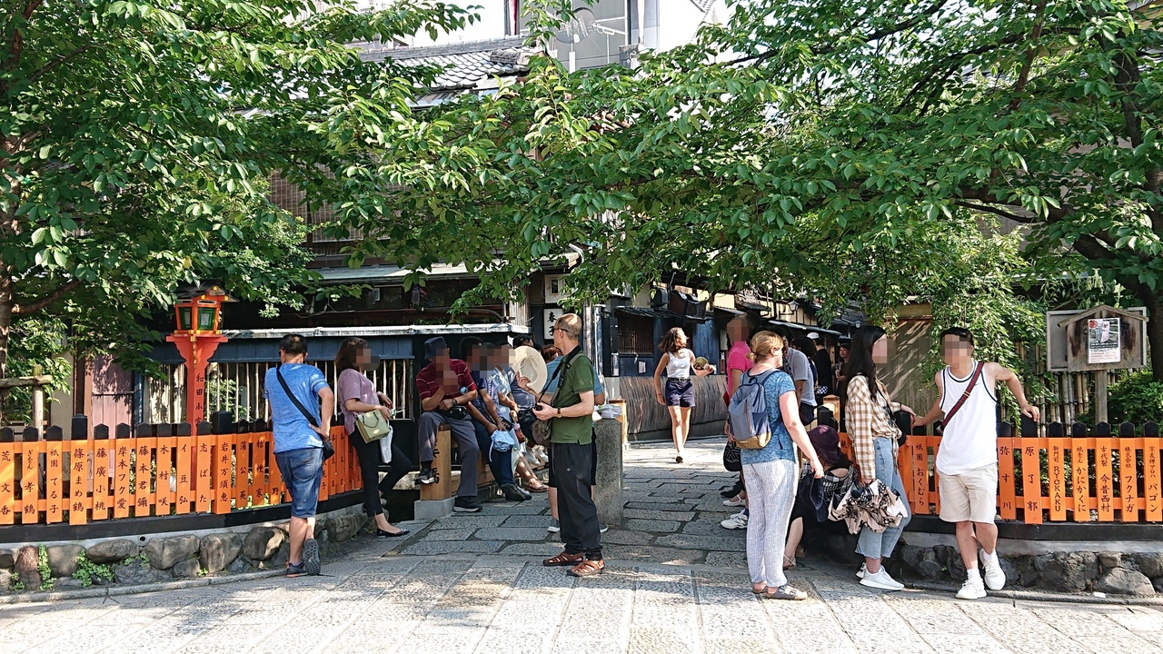 欄干に外国人が腰かけてます、石橋だからいいですが