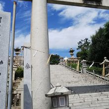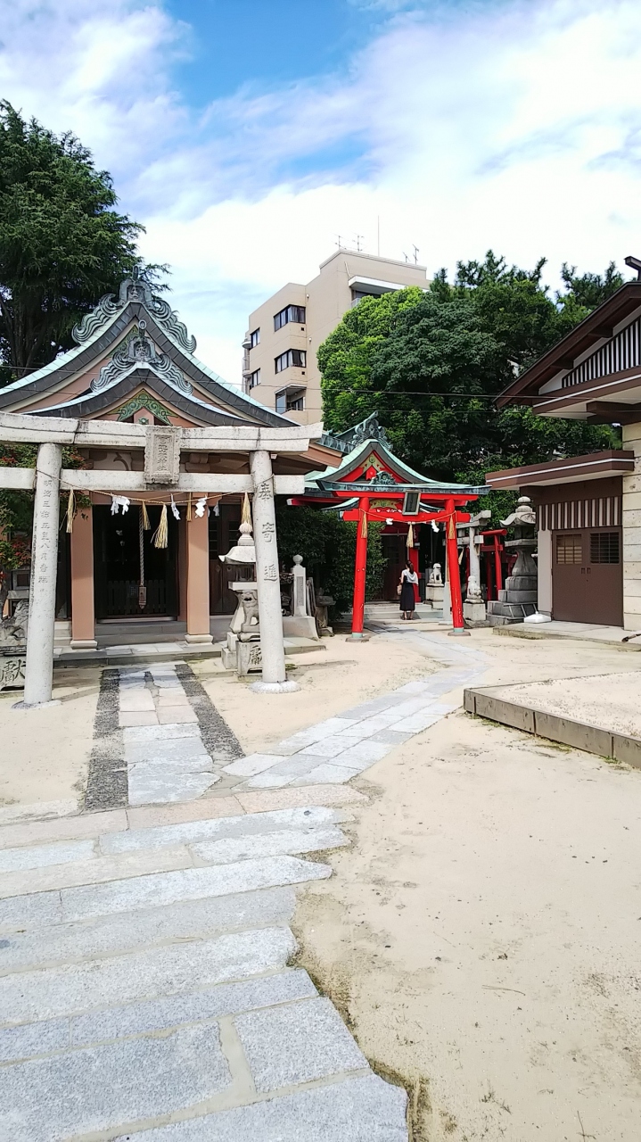 下関の代表的な観光地の唐戸市場、水族館辺りの道路の反対側にある亀山八幡宮。地元の方には馴染みの神社だそうです。大きな鳥居の向こうはちょっと躊躇しそうな長い階段。鳥居の脇には床屋発祥の地という石碑があります。ここが最初の床屋さんとは驚き。石段を上がると立派な社が見えます。高い場所にあるので海峡もよく見えます。こちらのご祭神は人徳天皇の分霊だそうです。下関ならではのふくの像や、絵馬ではなく絵ふくが沢山ならんでいます。こちらにしかないと言われるストライプの絣のような織物で作ったお守や御朱印帳を売っていました。忘れてはならないのが、すぐ脇にあるおかめ明神。小さな池には亀が沢山いて近くに行くとみんなこちらに寄ってきました。