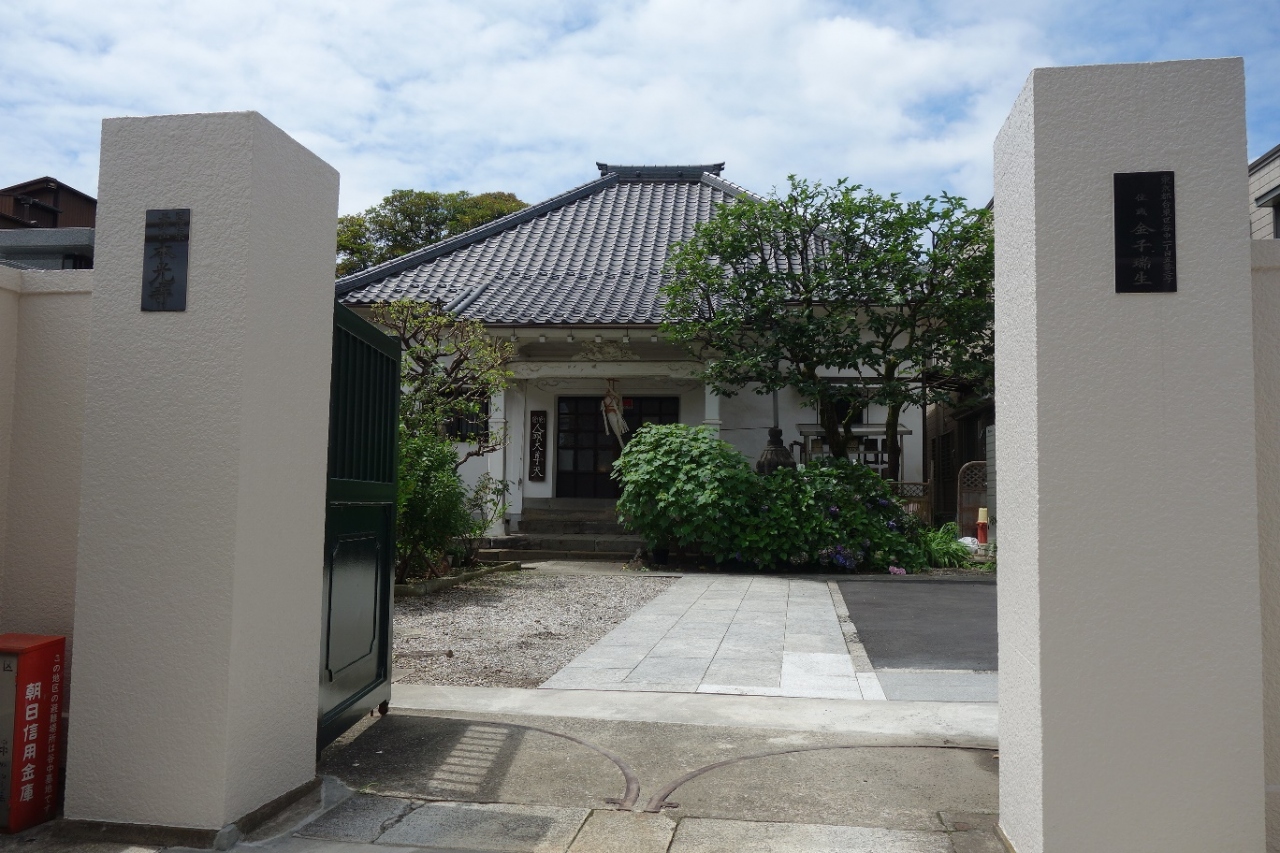 谷根千あたりのエリアを散策中こちらのお寺へ立ち寄りました。谷中墓地から言問通りへ出て右方向へ進むと通り沿いに寺院が並んでおり、こちら本光寺もそのひとつです。山門から境内へ入ると、白くてモダンなデザインのご本堂が有りました。
