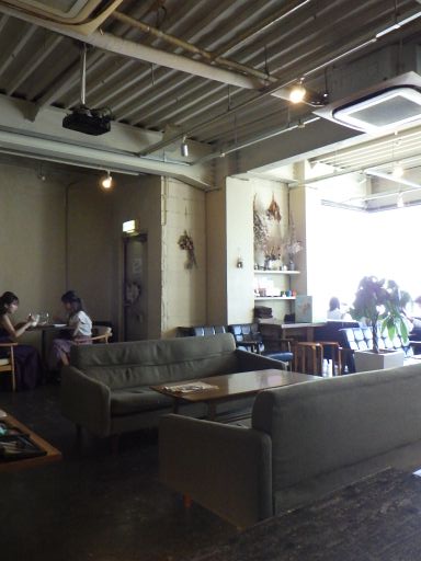 通りに面する壁は一面ガラスで、高所恐怖症の者だと利用し難いかも。そういう者は、奥の席を利用すべきか。