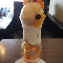 フレッシュな桃を半分にカットしたものを盛っているのが、最大の特徴。果汁が滴り落ちるくらいジューシーな桃で、これだけでも注文する価値がある、と思わせた。
