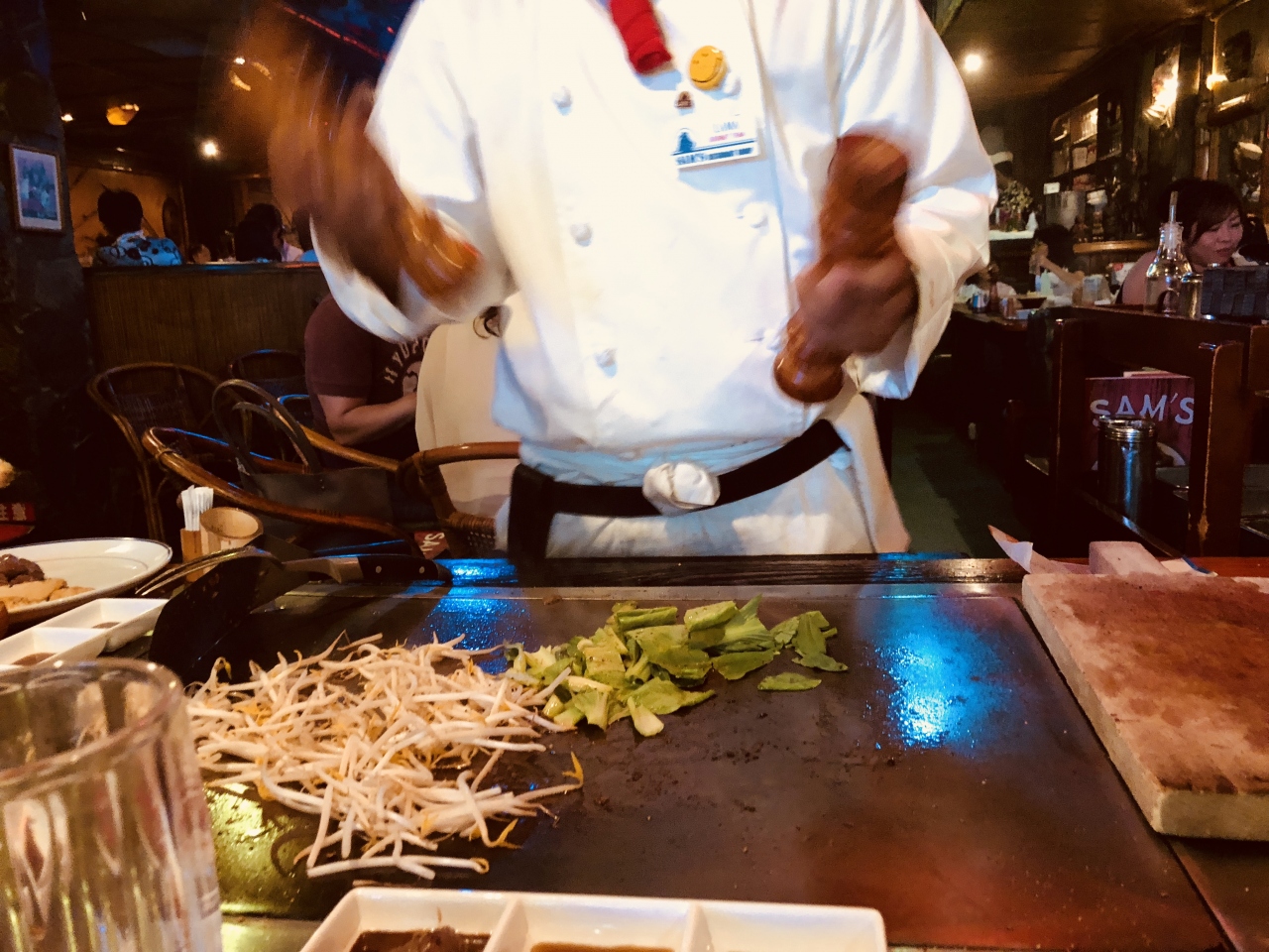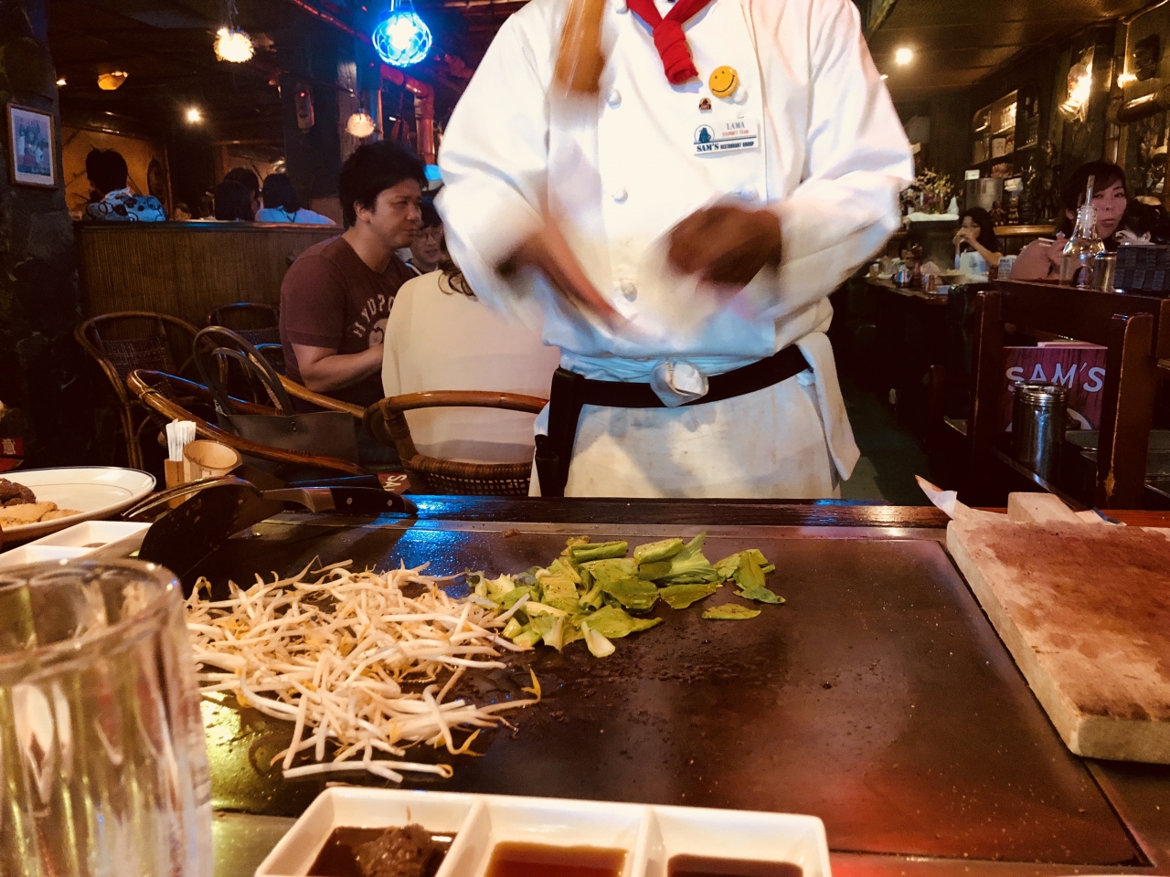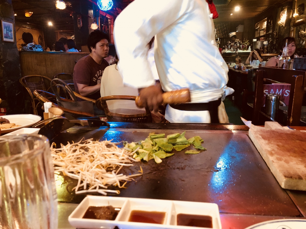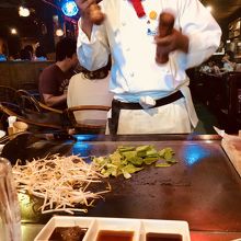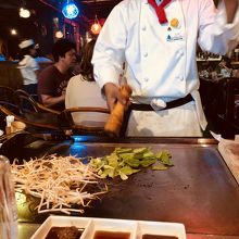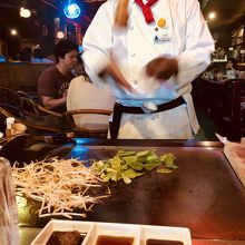 鉄板焼きのパフォーマンスも楽しかったし、多少のミスはご愛嬌で。