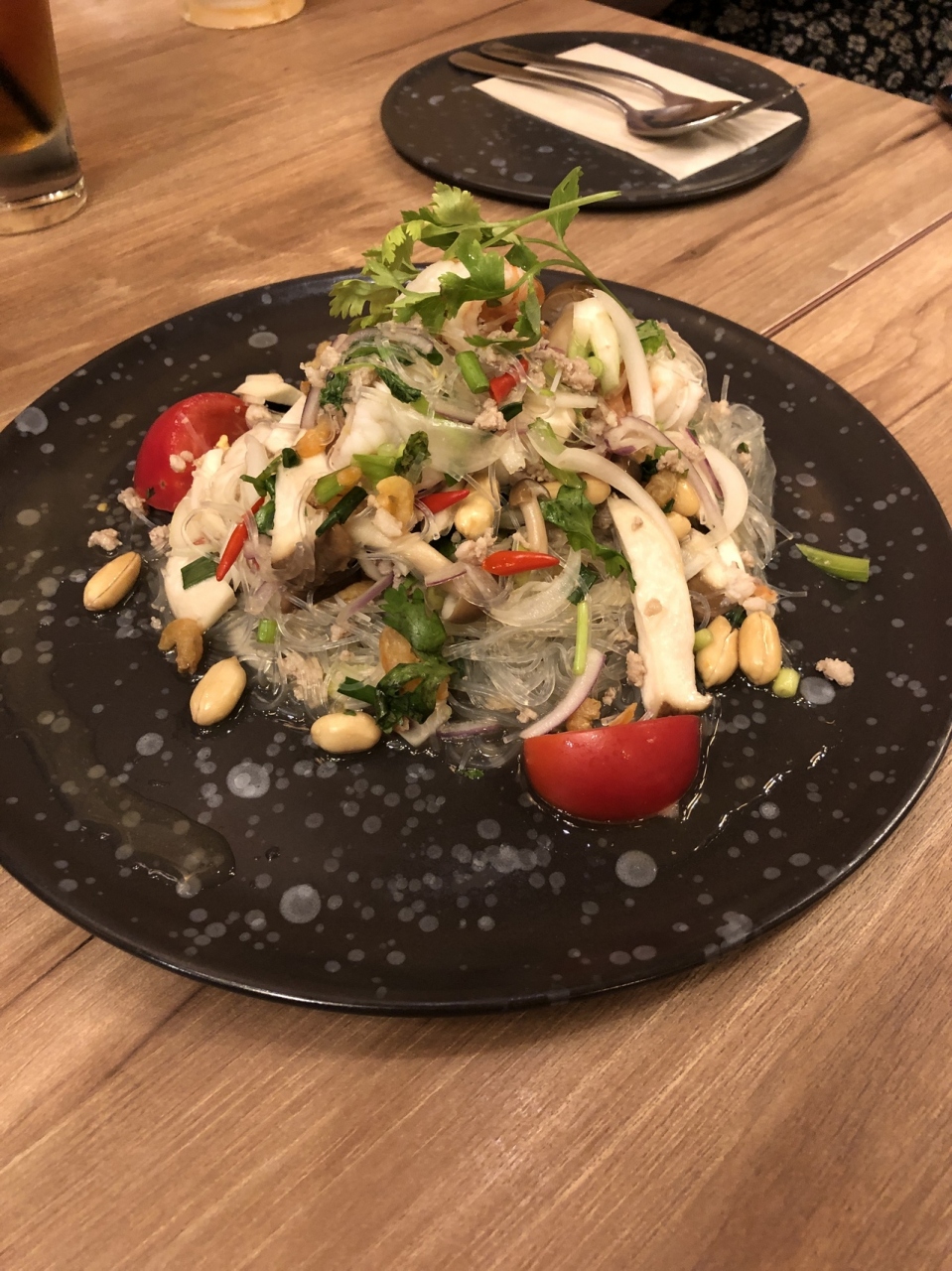 オーダーはヤムウンセン、揚げ春巻、トムカーガイ。どれもおいしかったですが、最後にオーダーしたパッタイは味がぼんやりしてました。