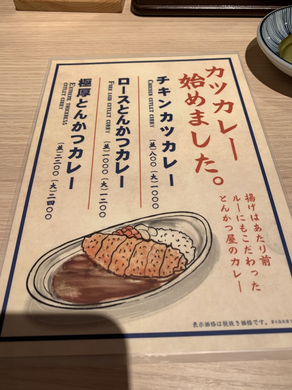 最近はじめられたメニュー。とんかつはもちろんうまいが、分厚いカツカレーも食欲をそそる。辛さはココイチの2辛くらい。カツが本格的でカレーソースはひき肉を炒めたような感じでうまい。これで1,080円は安い。