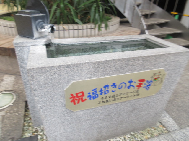 伊東温泉の駅前散策で見つけました。キネマ通りのアーケードの商店街のところにありました。無料で利用できる手専用の温泉「手湯」です。結構湯量もあるし、商店街の買い物ついでに、足湯と違って靴下を脱いだりもせずに、手軽に温泉体験ができるのでいいですね。混んでなかったので独占で利用できました。