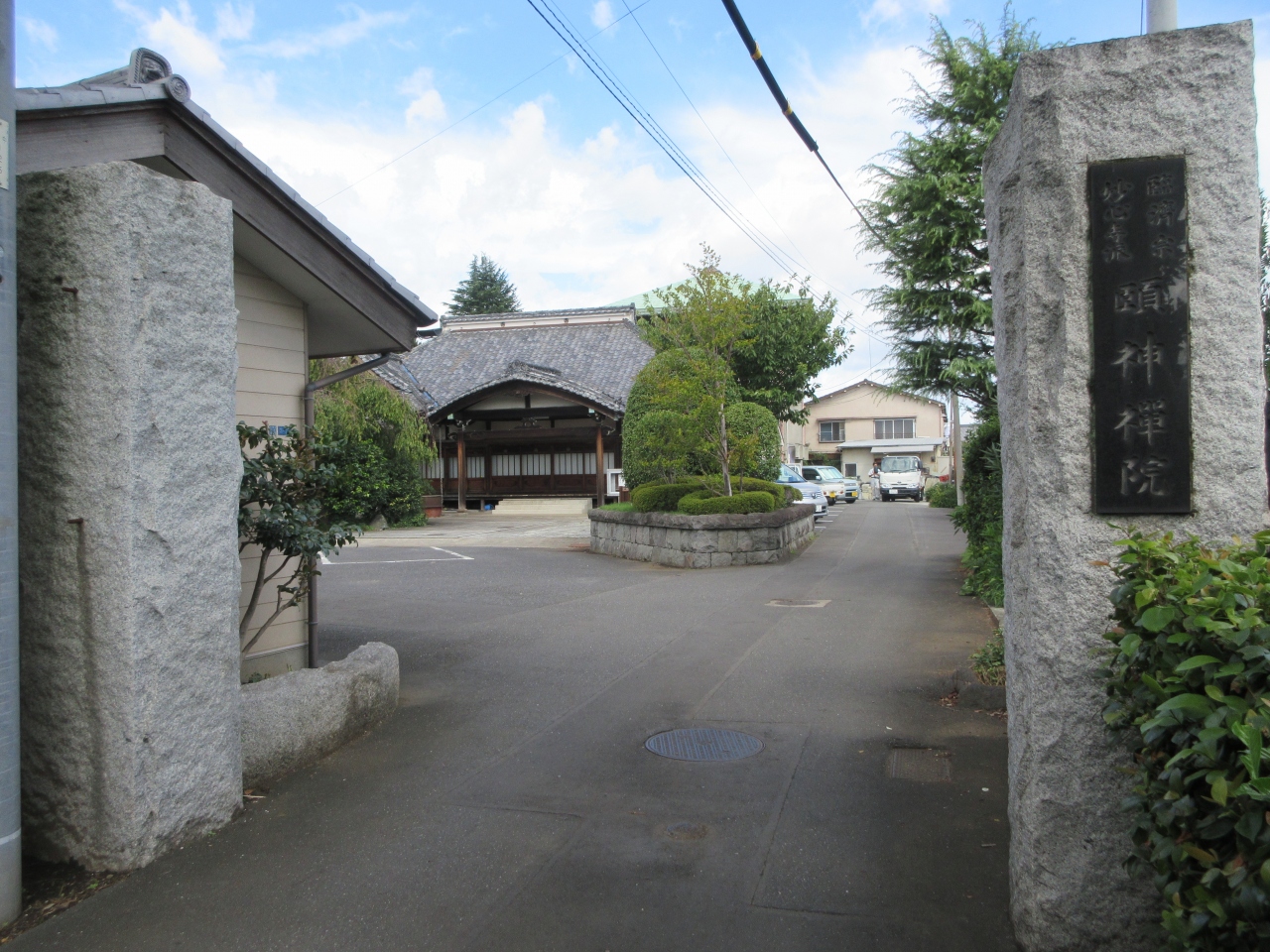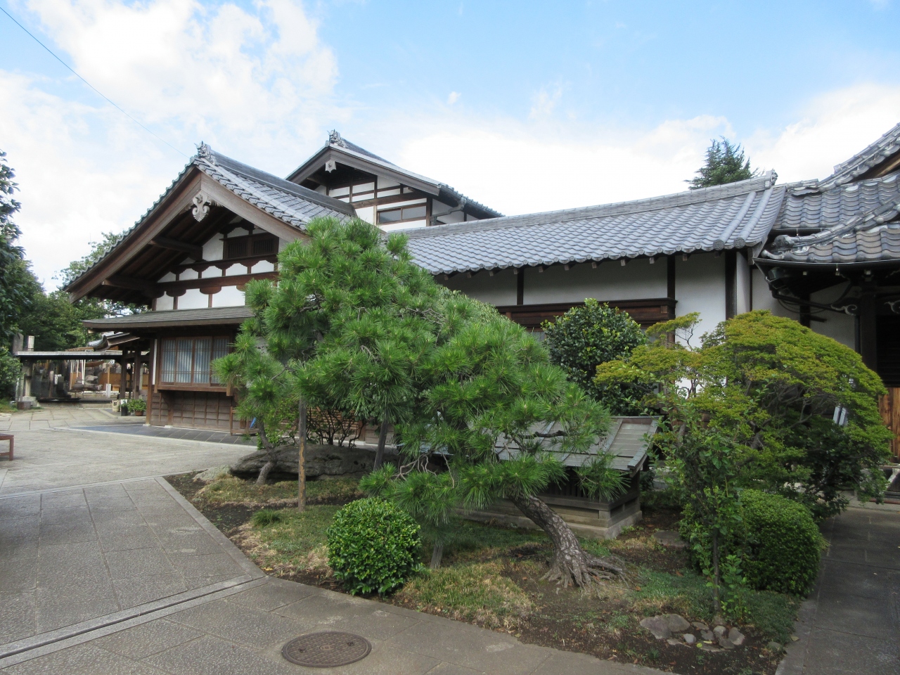 谷中の寺町を象徴するヒマラヤ杉の前の細い路地を入ったところに建つ臨済宗の寺院です。山門は狭いですが、境内と墓地はとても広く、墓地には墓の場所がわかりやすいように、アルファベットと数字が記された板が立っています。木造の本堂と客殿がある庫裏はとても立派で、山門の狭さからは想像できない大きさです。墓地入口には木を削って作った椅子が置かれた休憩所も造られています。寺の隣には広い敷地を持つ瑞輪寺が建っていることから、静かな寺という感じがしました。