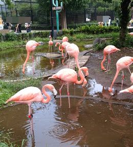 ゴリラとかも、暑さ対策で屋内で待機。まあこんなヒートアイランドの真ん中に連れてこられて、冗談じゃないよって思ってるかも知れません。野生の鳩(ただの土鳩)はたくましく徘徊してました。