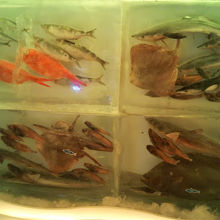 魚やイカなどが氷の中で勝ちんこ珍に凍っていて、見ているだけでも涼しい気分になれました。