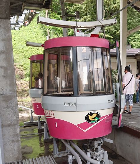 榛名富士山頂へロープウェイに乗って向かいました。可愛らしいゴンドラがふたつ連結されていて、約3分で頂上に着きました。頂上には展望台があり天気が良ければ富士山も見えるそうですが、あいにく雲が多く残念ながら見れれませんでした。