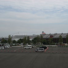 横浜JICAに行ったら、赤レンガの奥に大きな客船が停まっていたので行ってみました。