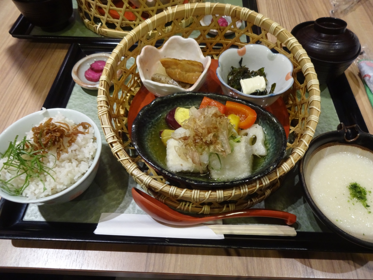 私は揚げ出し豆腐と野菜が色々付いたセットメニューを。