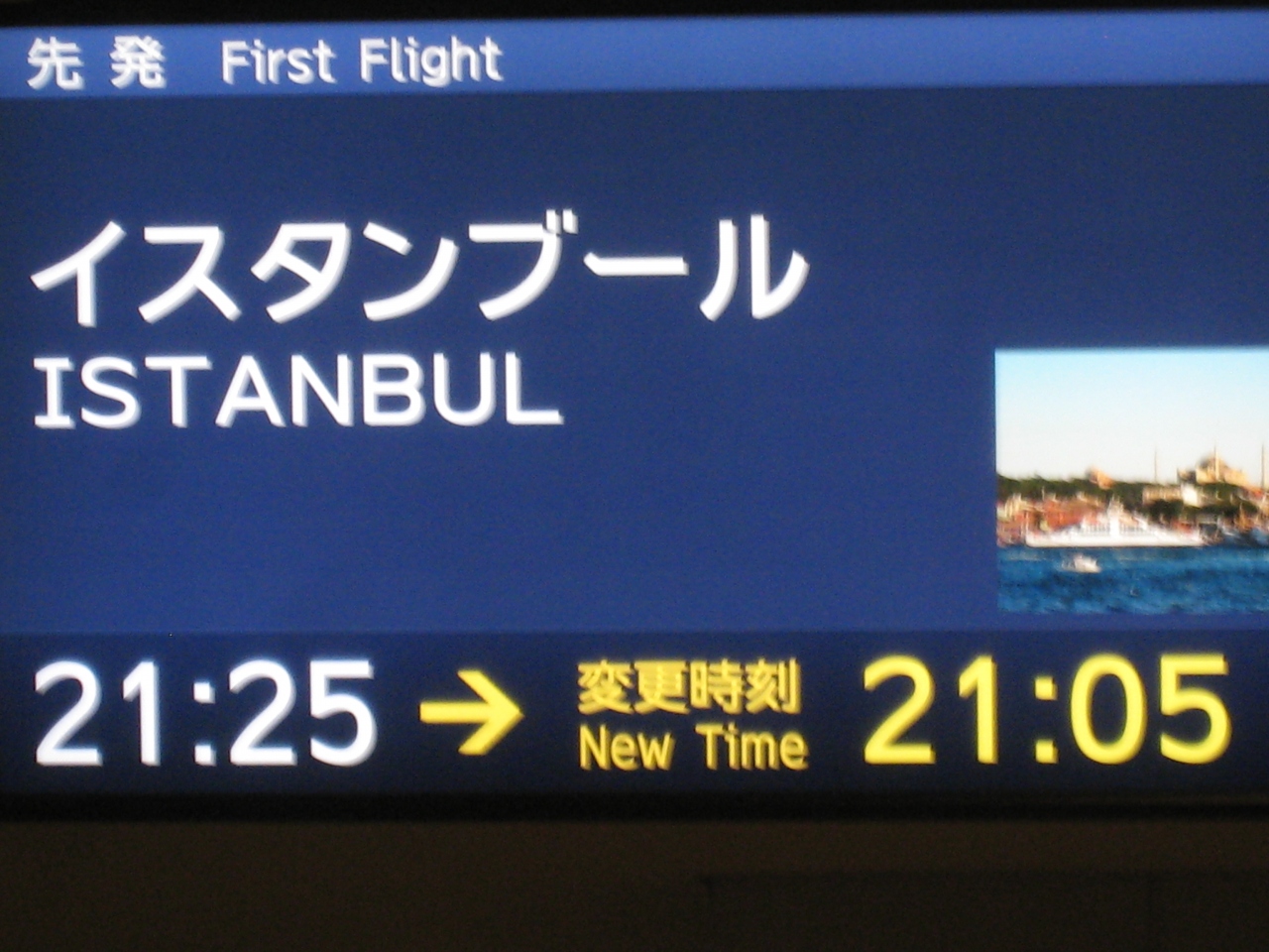 私は、トルコ航空を利用して、バルカン半島まで飛びました。但し、このトルコ航空、成田発の出発時刻が20分間も早まりました。写真は、それを示す写真です。かなり余裕を持って空港に着いていたので大丈夫でしたが、ぎりぎりだと大変だったと思います。