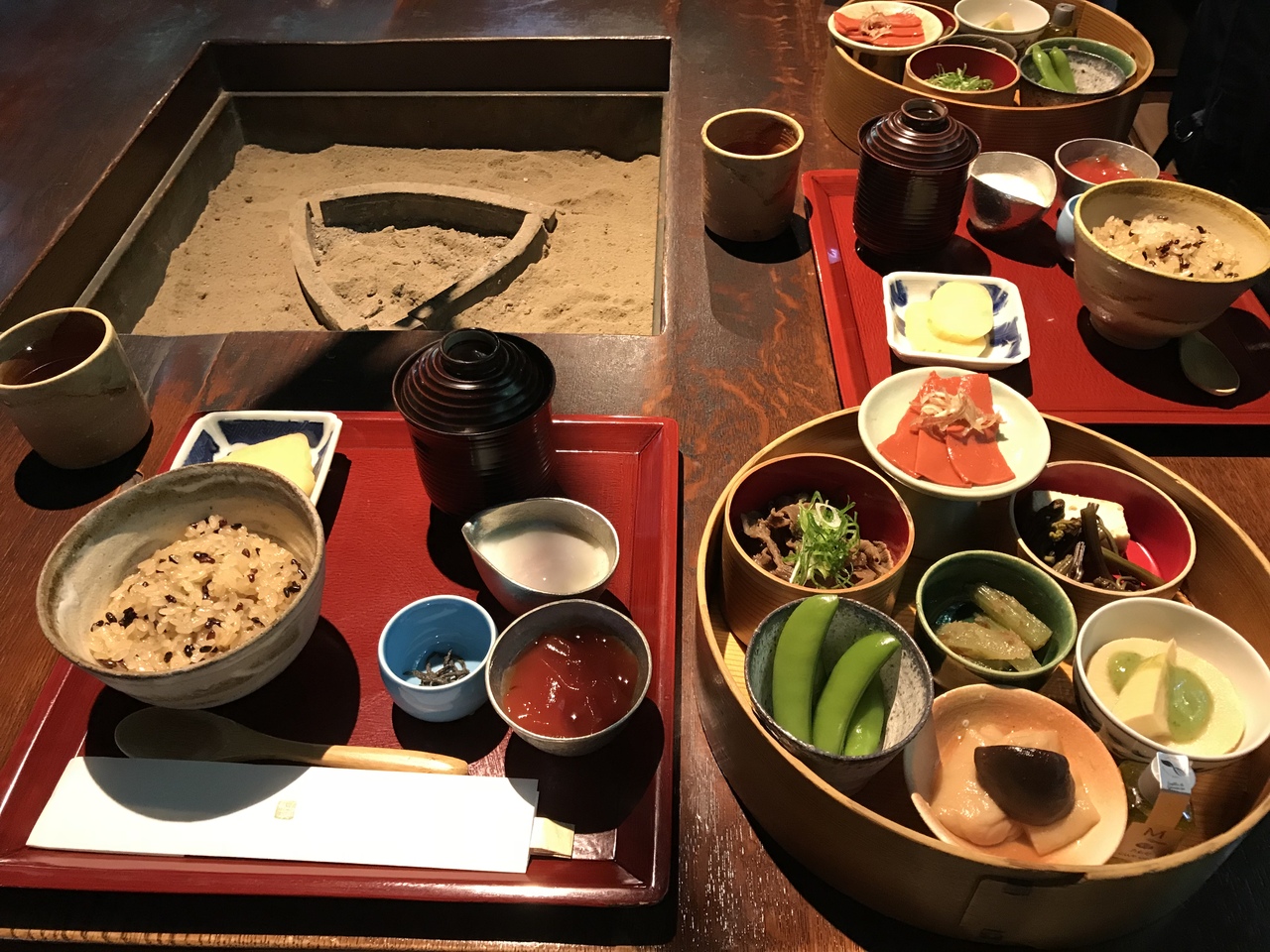日牟禮八幡宮の中にあるたねやの店舗です。和菓子などが売っていて中で食べることもでき、食事類の提供もしています。昼食で行き、たねや膳を頼みました。いくつか種類がありましたが、頼んだものはおこわと汁物・近江のおばんざい七品、またデザートもついてきました。どれも上品な味でおいしかったです。1階の席は囲炉裏などもある日本家屋風の落ち着いた雰囲気で、ゆっくり食事がてきよかったです。