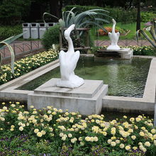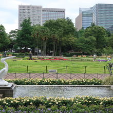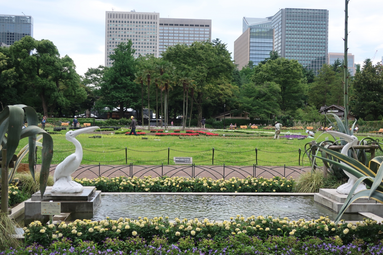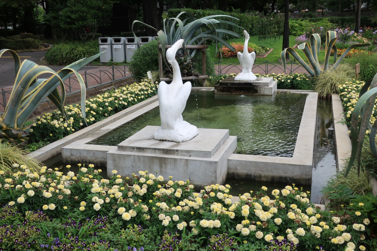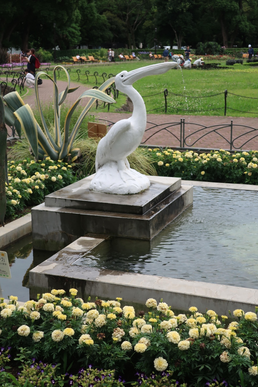 日比谷公園の第一花壇の北側にある四角い池があります。その池の両側に置かれているのがペリカン噴水です。日比谷公園が開園した当時からある噴水で、今もペリカンのくちばしからは水が噴き出ています。明治期に作られたペリカン像ですが、その出来栄えは見事で遠くから見ると本物の様に見えます。