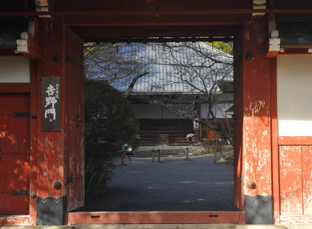 島原の名妓として知られた「吉野太夫」ゆかりの寺院。入り口にある緋色の山門は吉野門と呼ばれ、吉野太夫が寄進したという。吉川英治の『宮本武蔵』で吉野太夫が出てくる場面がある。武蔵と知り合った本阿弥光悦は吉岡一門との死闘直後で満ちあふれた殺気を打ち消すため、武蔵と遊里に繰り出して太夫に引き合わせる。太夫はそこで武蔵の心をいやす―という場面だ。厳密には『宮本武蔵』に描かれる吉野太夫は初代で、お寺ゆかりの太夫は二代目らしい。しかし、吉野太夫という<大名跡>を襲名する女性ならば備えるであろうやさしさのようなものが庵や紅葉など所々に感じられるような気がする。