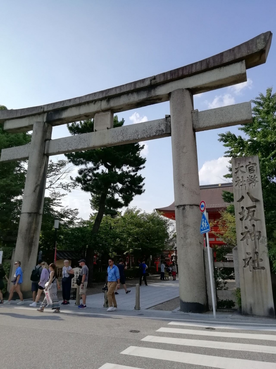 八坂神社から南楼門をでるとあるのが石鳥居で明神鳥居という作り