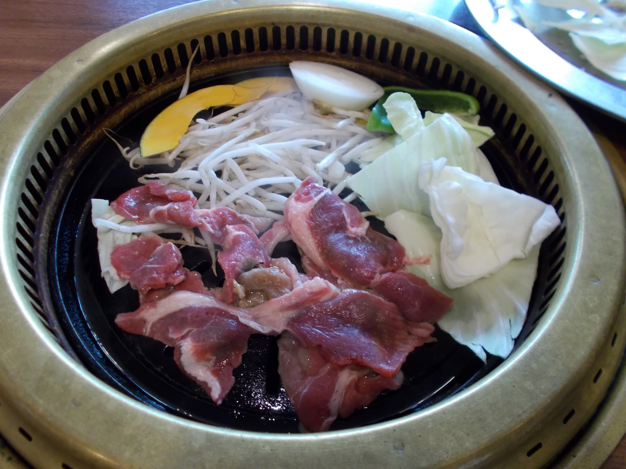 ランチタイムの時間の営業は、土曜、日曜、祝日のみです。90分制の4種のジンギスカン食べ放題ランチ、1480円(税抜)をいただいてきました。長いテーブルが、二人づつ区切られていて、ひとりジンギスカンができます。実際にひとりの人が複数来ていました。