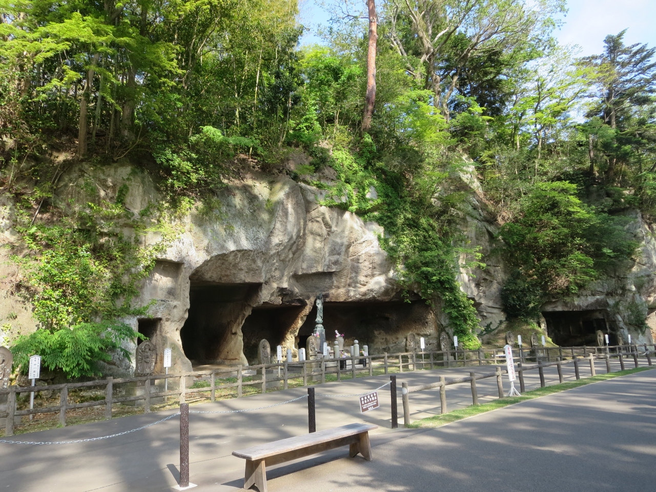参道の並木と洞窟群が目をひきます