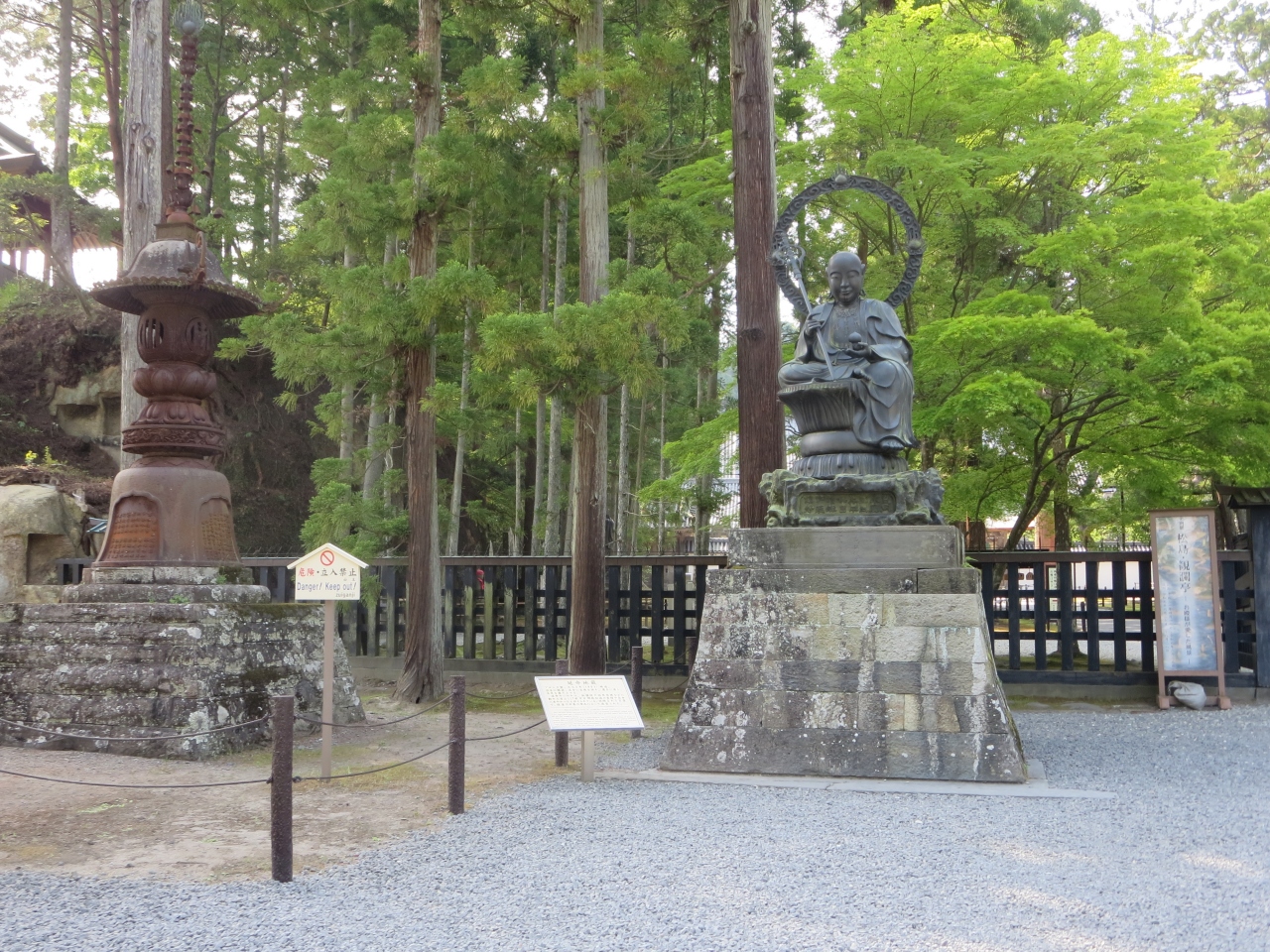 延命地蔵が置かれた入口から先が有料区域で国宝が並んでいます。豪華絢爛な建物を見学するか、自然の風景を見るかで見学ルートに好みがあると思います。