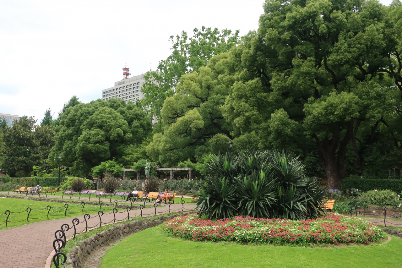 日比谷公園には二つの大きな花壇があり、公園の北側、心字池の西にあるのが第一花壇です。日比谷公園が開園した明治36年からある洋風花壇で、花壇の中は手入れが行き届いていて、季節ごとに綺麗な花が咲き誇っています。周辺にはベンチが置かれ、正に都会のオアシス的な場所です。