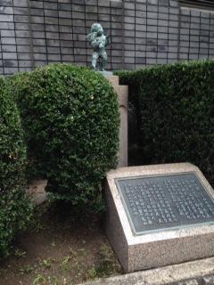 水鏡天満宮近くの商業ビルの前に、小さく可愛いブロンズ像を見つけました。作者は、山崎朝雲との事で、男の子が兎を抱えている様でした。像は小さく可愛いのですが、その前には、割と立派な説明板があり、この像に関しての説明が記入されていました。とても興味の湧く内容でした。