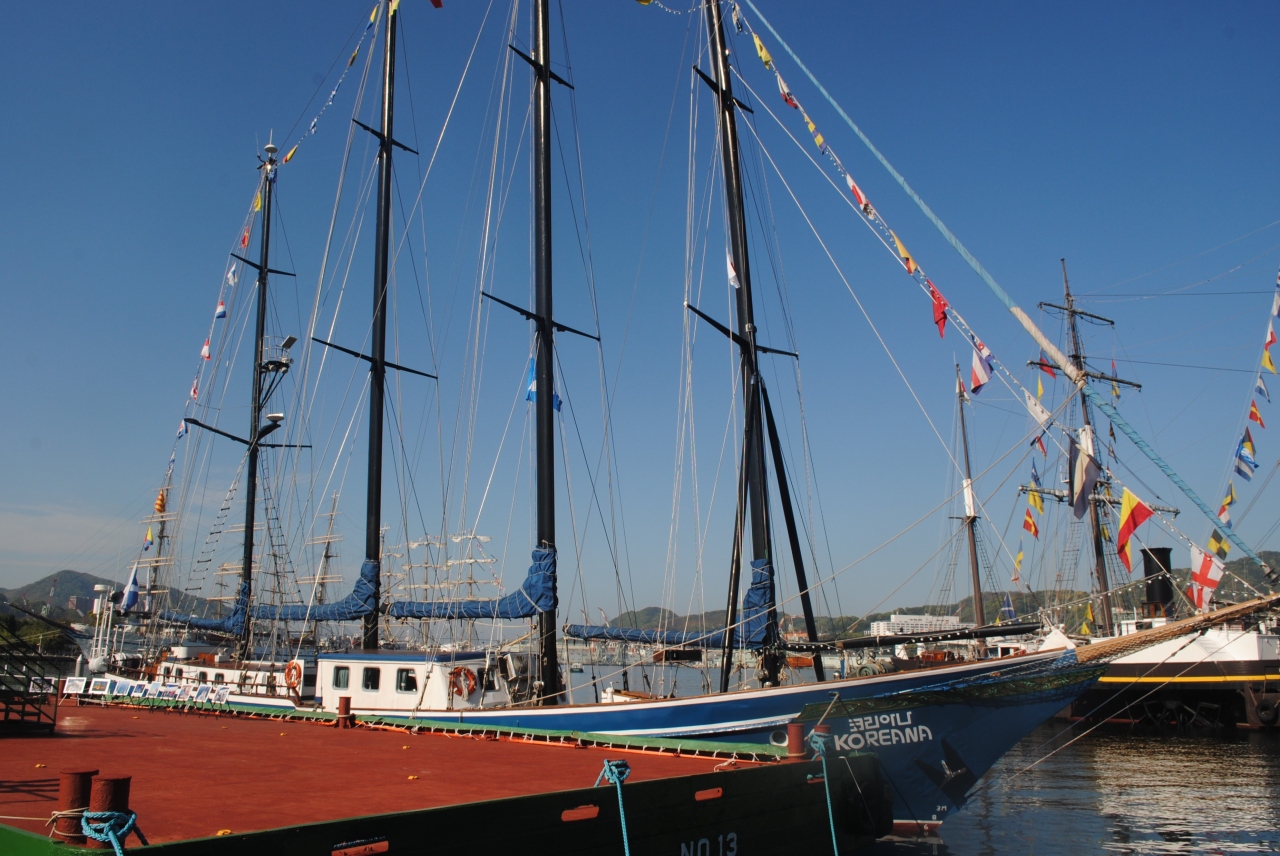 お祭りのイベントが始まる前に訪れたので、帆船を見て回りました。