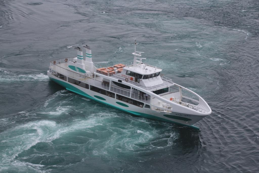 同じ会社が運行しているもう一つの高速船は、 水中の渦潮を見たり水面の渦潮を見たりとちょっと忙しいので、こちらの船でゆったり行く方がおすすめです。