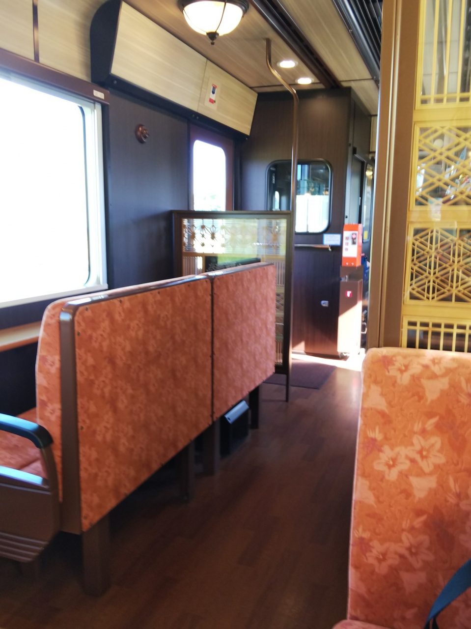 車内は素敵な内装で、能登の伝統工芸品が各所に配置されています。